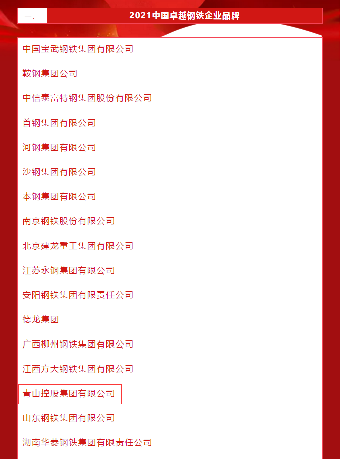 5月10日,第5个中国品牌日,中国冶金报社发布了2021年度中国钢铁品牌榜。pa视讯控股集团有限公司荣膺“2021中国卓越钢铁企业品牌” “2021中国特钢企业卓越品牌”。