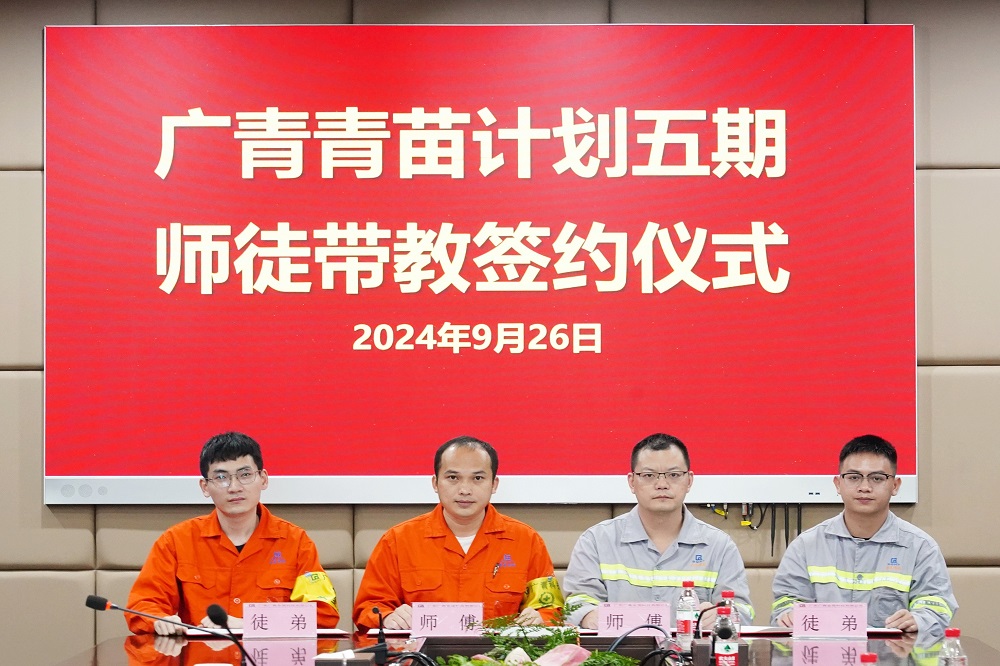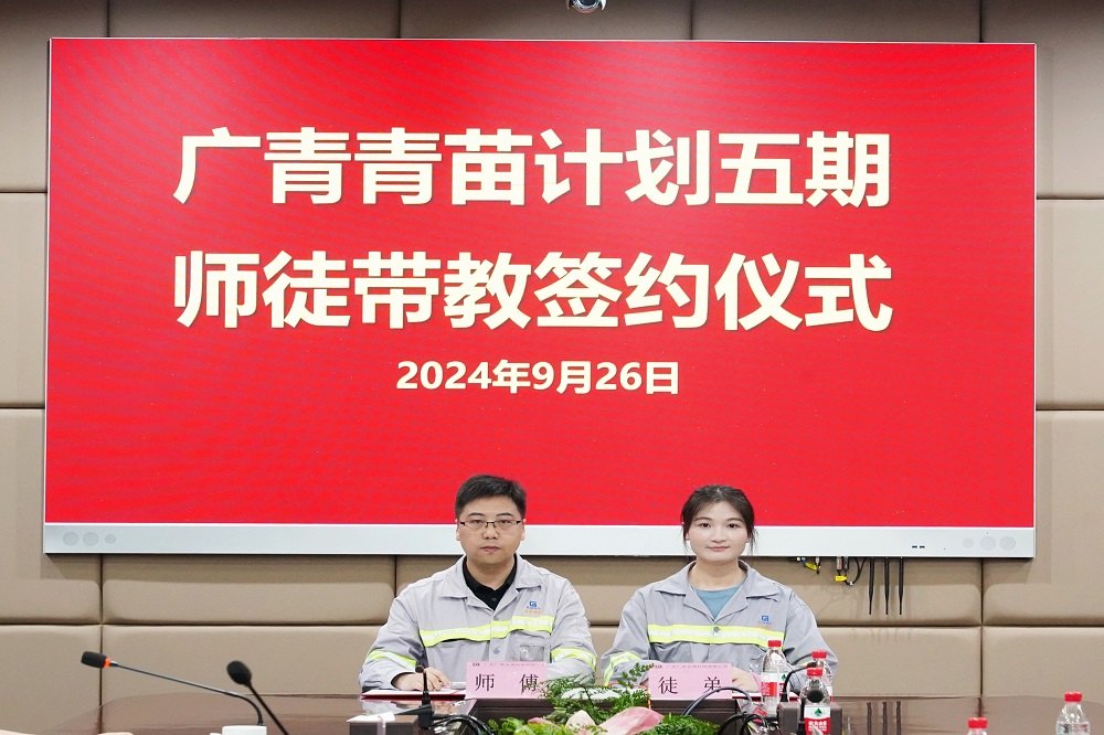 9月26日,广东广青金属科技有限公司“青苗计划”第五期启动暨师徒带教签约仪式在公司办公楼一楼会议室举行。公司党委副书记、工会主席王大庆,党委委员、副总经理杨洋,相关部门(厂)负责人及参与“青苗计划”五期师徒带教的学员和师傅约35人参加。