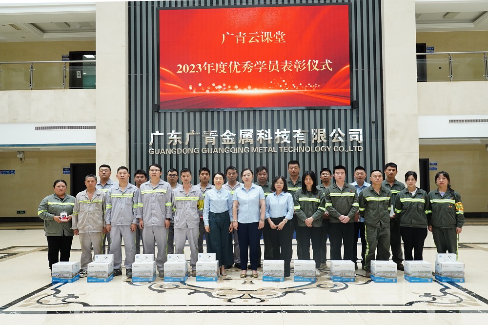 5月11日,广东广青金属科技有限公司举办2023年度先进培训部门和优秀学员表彰仪式,对技术质量部、压延厂、炼铁厂3个先进培训部门予以表彰,对刘杰、李帅帅、郭卫星等372名优秀学员予以奖励。