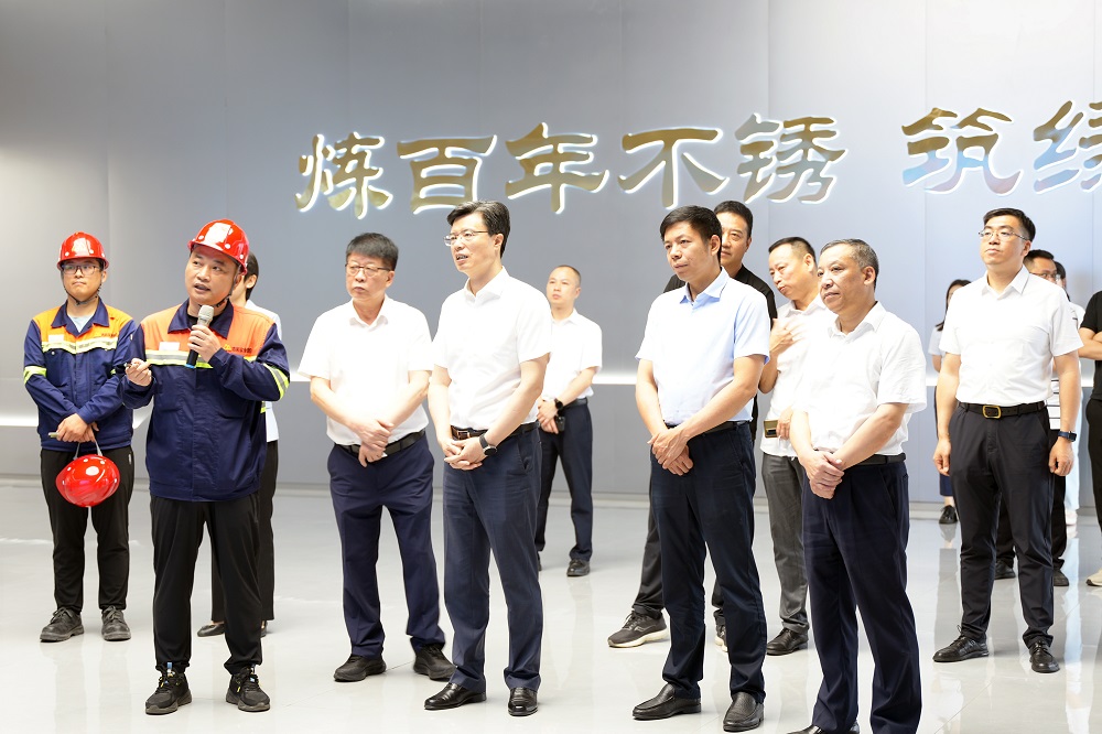 金焕民一行参观了供销大厅、研究院、家具展厅、电子展厅,陈庆科详细介绍了青拓集团不锈钢棒材、线材、板材等产品在国内市场占比情况及RKEF+AOD双联法工艺流程。他指出:RKEF+AOD双联法工艺的创新为全球不锈钢冶炼成本树立了新标杆,极具成本优势,而且能耗低。