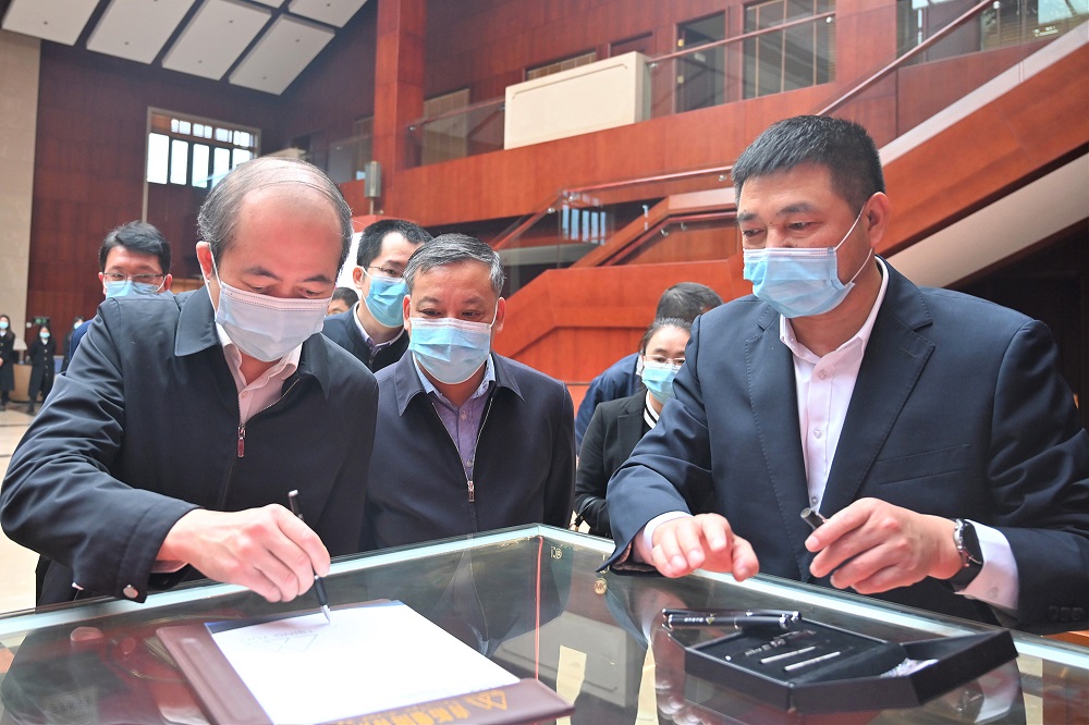 钟盛江指出:青拓集团坚持创新引领发展,自主研发笔尖钢,总体性能已达到国内领先水平,未来2至3年,青拓集团力争使笔尖钢国内市场占有率达到90%以上。叶飞文对企业的创新能力给予高度肯定。