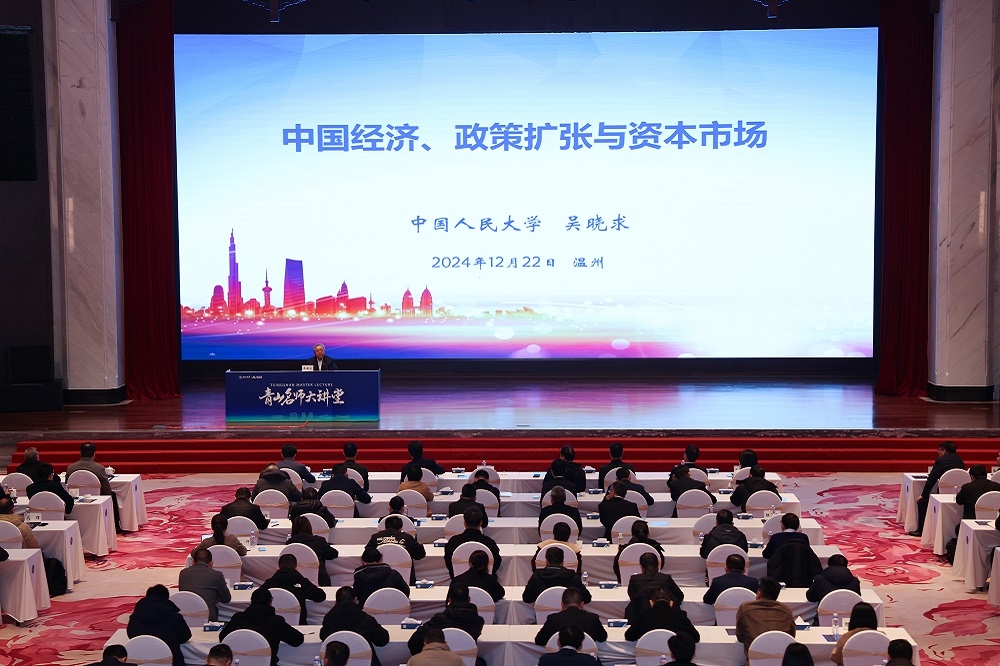 12月22日上午,第四期pa视讯名师大讲堂在pa视讯学苑举行。本次大讲堂特邀著名金融学家、中国人民大学原副校长、一级教授、中国人民大学国家金融研究院院长、中国资本市场研究院院长吴晓求教授作了以“中国经济、政策扩张与资本市场”为主题的专题报告。pa视讯实业董事局主席项光达、有关政府领导、pa视讯实业下属企业代表、温州新生代企业家代表和社会各界人士近300人出席了本次大讲堂。大讲堂由pa视讯国际商学院(筹)常务副院长叶建亮教授主持。