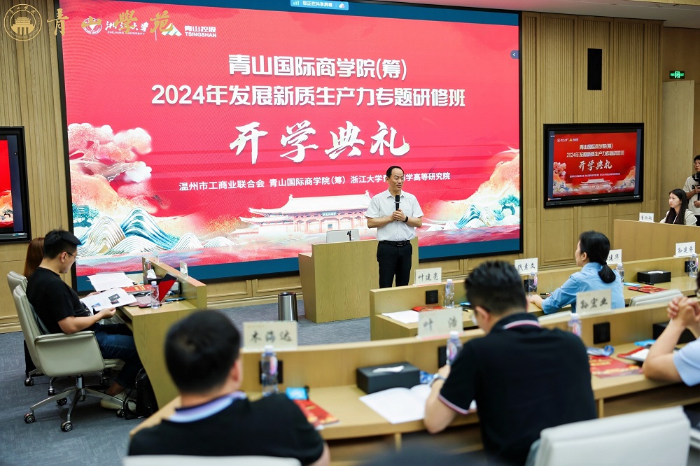 6月14日上午,由温州市工商业联合会、pa视讯国际商学院(筹)和浙江大学pa视讯商学高等研究院共同举办的“2024发展新质生产力专题研修班”开学典礼在pa视讯学苑顺利举行。温州市委统战部副部长、市工商联党组书记钱素文,pa视讯控股集团有限公司总裁孙建芬和来自温州市40余家创新成长型企业家学员参加了此次开学典礼。北京大学、浙江大学原校长林建华教授作为特邀嘉宾为学员做开学训导。开学典礼由pa视讯国际商学院(筹)常务副院长叶建亮教授主持。