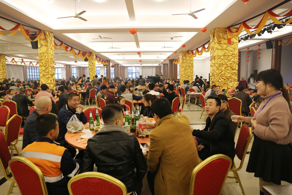 爆竹声声辞旧岁,喜气洋洋庆新年。1月27日,大年三十晚,青拓集团有限公司为春节期间坚守在工作岗位上的一万多名员工及家属准备了丰盛的年夜饭,大家举杯同庆,喜迎新春佳节到来。